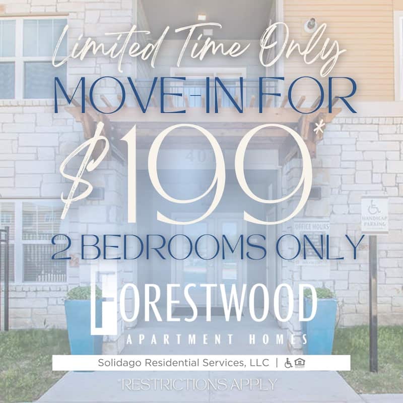 Welcome to Forestwood Apartment Homes, an affordable apartment community in Balch Springs, just southeast of Dallas, TX. Forestwood offers one-, two-, and three-bedroom floor plans to fit your needs and budget. Each Balch Spring apartment for rent provides first-rate features and amenities, like faux wood flooring, central heat and air conditioning, 2-inch plantation blinds, walk-in closets, and kitchens with a dishwasher and garbage disposal for added convenience.